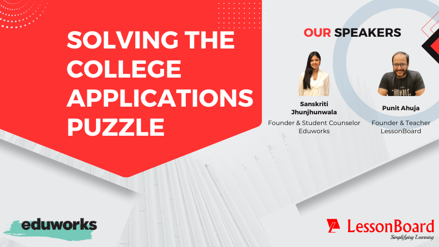 LessonBoard recently hosted a free seminar titled “Solving the College Application Puzzle” at its Kolkata Learning Centre. The event was a joint effort by Mr. Punit Ahuja, Founder of LessonBoard, and Ms. Sanskriti Jhunjhunwala, Founder of Eduworks. The seminar addressed critical topics, including changes to the Digital SAT, a comparison of Digital SAT and ACT, the timeline for test preparation in the context of college applications, the significance of standardized tests in test-optional admissions, and the global relevance of SAT/ACT exams. This informative session aimed to assist students and parents in navigating the complex landscape of college applications.